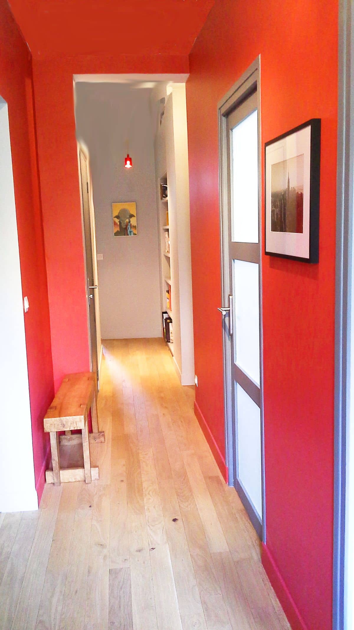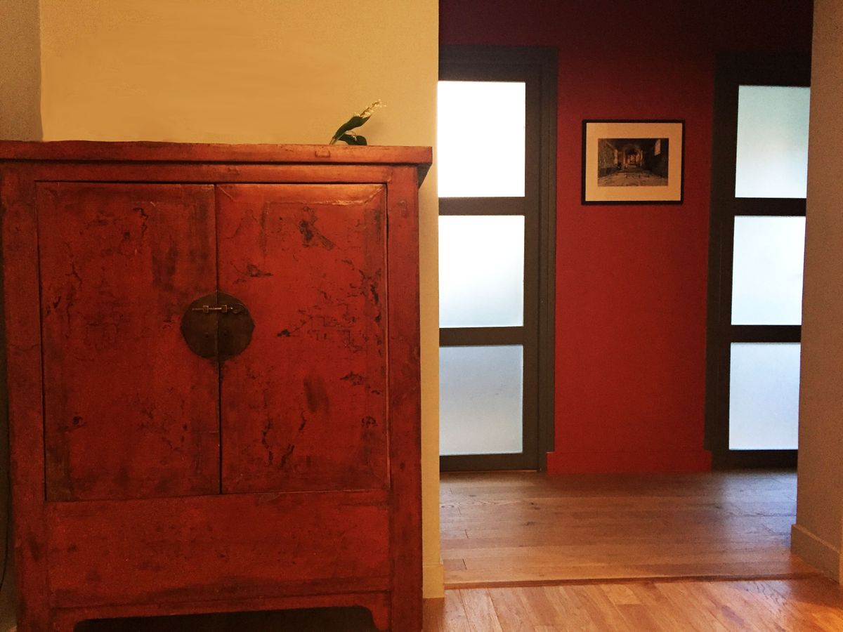 Dans une maison familiale de 250m2 sur deux étages avec un petit jardin, nous procédons à un réaménagement, une rénovation de salle de bain et la création d’une salle de bain supplémentaire. Redonner une identité plus marquée et plus contemporaine au lieu et permettre une fluidité de circulation par un désenclavement des espaces autour de l’escalier, de part et d’autre, en abattant quelques murs. Une volonté des propriétaires d’utiliser la couleur, nous autorise également à créer des ambiances chaudes qui oscillent alors entre un esprit intemporel associé à des touches chinoises.